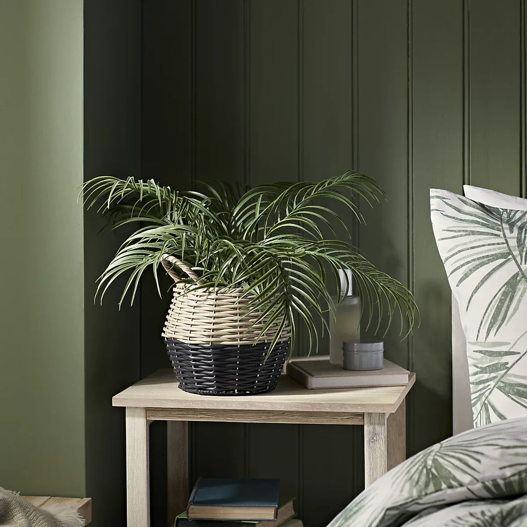 This brand new trendy palm comes in a stunning wicker basket and boasts a highly realistic design. Requiring no maintenance, bring the beauty of the garden into your home with this aesthetic artificial plant. Perfect for home display on shelves, sideboards and windowsills.