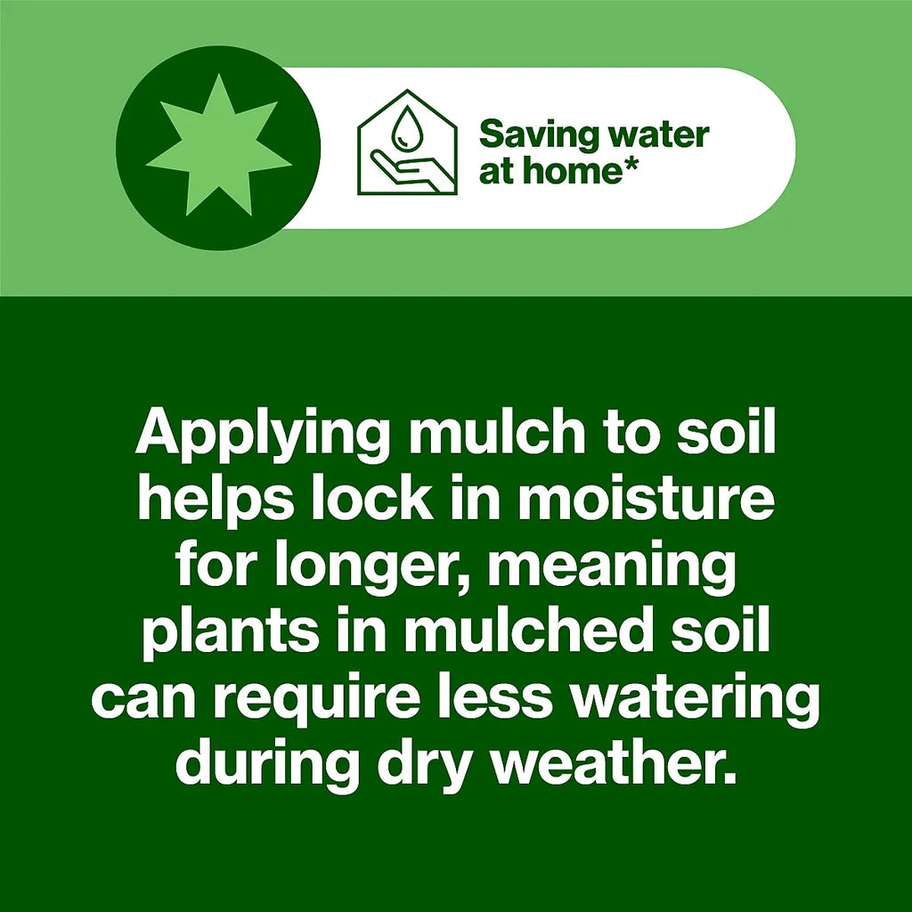 - Green star claim - Applying mulch to soil helps lock in moisture for longer, meaning plants in mulched soil can require less watering during dry weather. *
