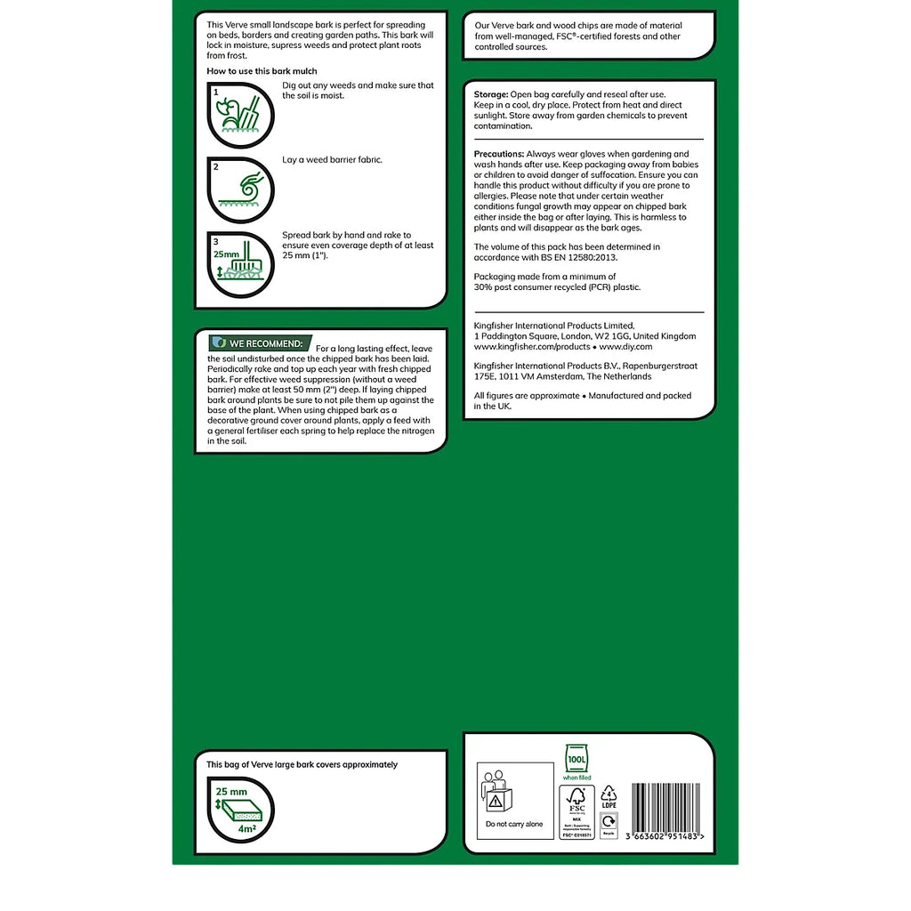 - Verve's small landscape bark locks in vital moisture and keeps weeds at bay, creating the perfect backdrop for happy healthy plants
